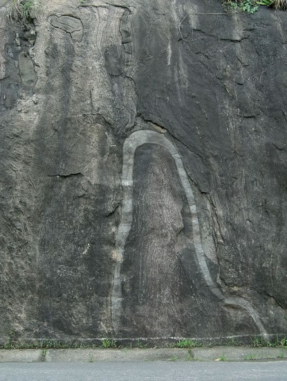 Tem a aparência de um portal oriental, ladeada por saliências mais escuras, que muitos chamam de cobra ou arco escuro. Sobre ela contam-se misteriosas lendas que os antigos veneram. Toda a parede rochosa é sólida, firme e dura, mas se batermos na porta com uma pedra, ouve-se um som oco, como se houvesse um extenso vazio.